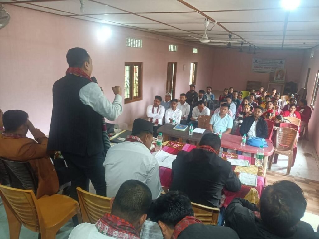 तिनसुकिया, 18 मार्च 2026 : अखिल असम गोर्खा छात्र संघ (आग्सु) तिनसुकिया जिल्ला समिति अन्तर्गत केटेटङ–पावाई वनगाउँ आञ्चलिक समितिको अष्टम द्वि–वार्षिक अधिवेशन सफलतापूर्वक सम्पन्न भएको छ। आञ्चलिक समितिका सभापति पर्वत राईको सभापतित्वमा आयोजित प्रतिनिधि सभामा जिल्ला समितिबाट पर्यवेक्षकका रूपमा जिल्ला सांगठनिक सचिव जतन प्रधान, शंकर जैसी, दल लिम्बू, शिक्षा सचिव खेम बहादुर छेत्री, सह सांस्कृतिक सचिव मुकेश विश्वकर्मा तथा सक्रिय सदस्य दिलीप छेत्रीको उपस्थिति रहेको थियो।