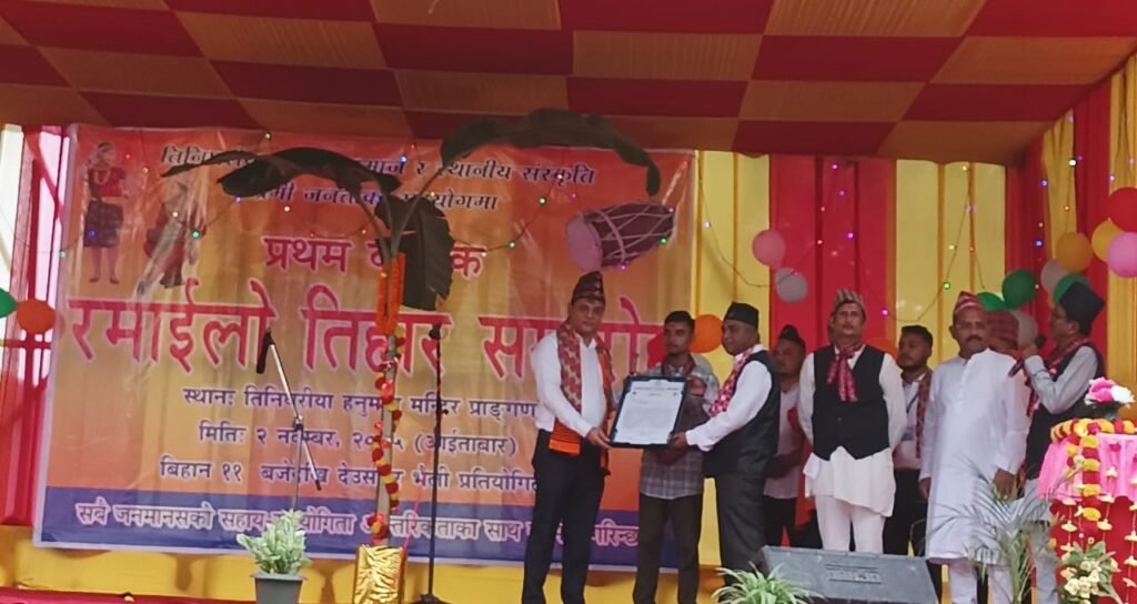 तिनीघरिया, शोणितपुर, नोभेम्बर ३: तिनीघरिया गोर्खा युवामञ्चद्वारा आयोजित ‘प्रथम वार्षिक तिहार समारोह–२०२५’ अत्यन्तै आकर्षक, अनुशासित र सांस्कृतिक वैभवले ओतप्रोत वातावरणमा