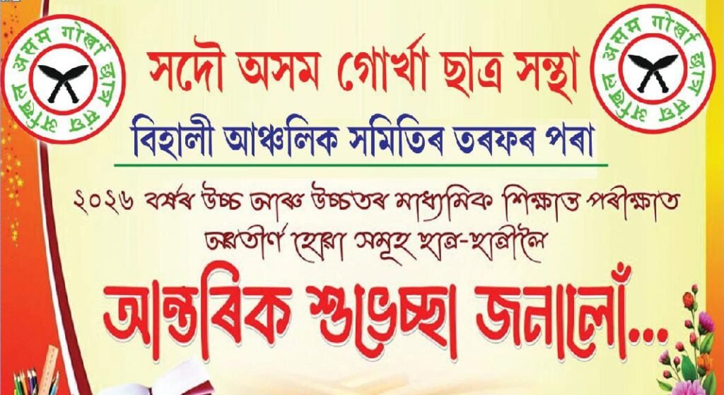 गहपुर १५ फरवरी: अखिल असम गोर्खा छात्र संघ, गहपुर आञ्चलिक समितिले आगामी २०२६ सालको उच्च तथा उच्चतर माध्यमिक परीक्षा दिने