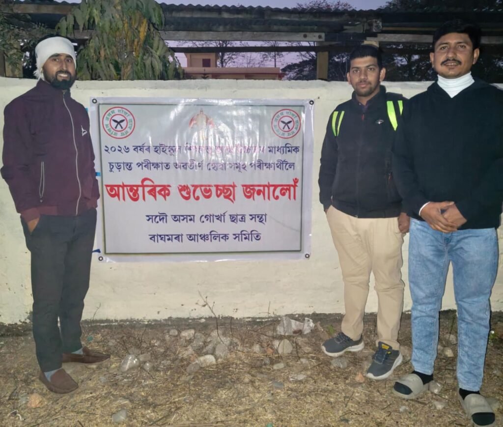 बाघमारा, १० फेब्रुवारी: अखिल असम गोर्खा छात्र संघ (AAGSU) बाघमरा आञ्चलिक समितिले आगामी २०२६ सालको उच्च तथा उच्चतर माध्यमिक परीक्षा दिने विद्यार्थीहरूलाई लक्षित गर्दै उनीहरूको वासगृहमा घरदैलो कार्यक्रममार्फत शुभकामना प्रदान गरेको छ।