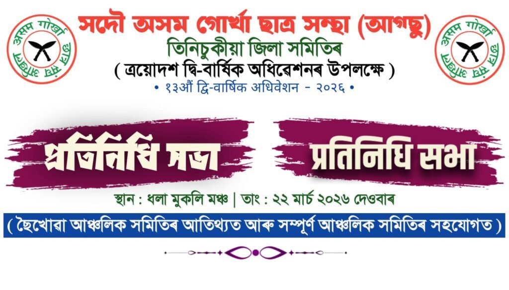लखीपथार, तिनसुकिया १९ मार्च: अखिल असम गोर्खा छात्र संघ (आग्सु) को संगठनात्मक संरचनामा एक महत्वपूर्ण तथा ऐतिहासिक निर्णय लिँदै लखीपथार