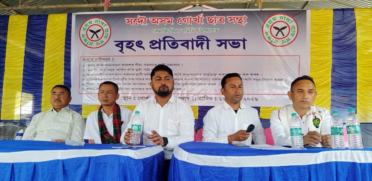 অসম–অৰুণাচল সীমান্ত সমস্যাকে ধৰি অঞ্চলটোৰ জ্বলন্ত সমস্যাসমূহৰ স্থায়ী সমাধানৰ দাবীত চিলাপথাৰৰ গোৰ্খা ভৱন প্ৰাংগনত ধেমাজি জিলা গোৰ্খা ছাত্ৰ সন্থাই সাতদফীয়া দাবী উত্থাপন কৰি উত্তাল প্ৰতিবাদ সাব্যাস্ত কৰে।