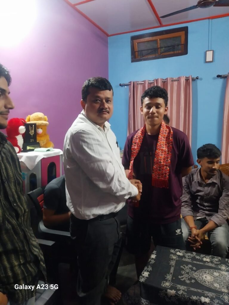 ১২ এপ্ৰিল ২০২৬, টংলা: সদৌ অসম গোৰ্খা ছাত্ৰ সন্থা (আগ্ছু) টংলা আঞ্চলিক সমিতিৰ উদ্যোগত আজি এক গৌৰৱময় পৰিৱেশত হাইস্কুল শিক্ষান্ত পৰীক্ষাত উৎকৃষ্ট ফলাফল লাভ কৰা প্ৰতিভাৱান ছাত্ৰ বিবেক থাপালৈ তেখেতৰ নিজ বাসগৃহত উপস্থিত হৈ আন্তৰিক সম্বৰ্ধনা আৰু শুভেচ্ছা জ্ঞাপন কৰা হয়।