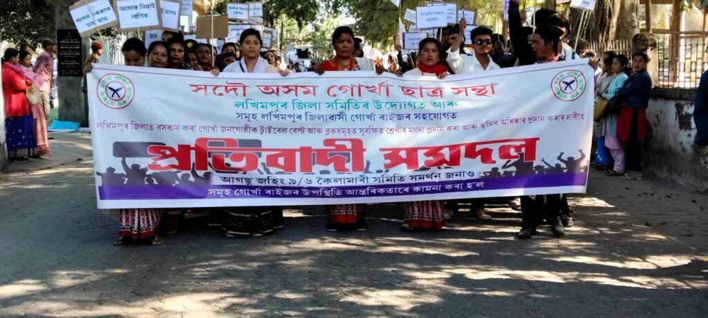 लखिमपुरमा हजारौँ गोर्खाको विशाल विरोध–समदोलमाटो अधिकारको मागमा सडकमा उत्रियो आग्सु