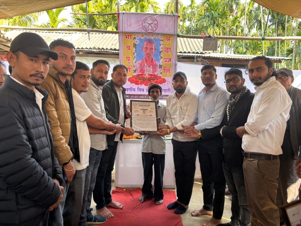 बाक्सा,२६ जनवरी २०२६ :दिवंगत मित्र भण्डारीज्यूको आवासमा अखिल असम गोर्खा छात्र संघ (AAGSU) सहित विभिन्न तहका संगठनात्मक पदाधिकारीहरूद्वारा गठित एक प्रतिनिधि टोली उपस्थित भई श्रद्धाञ्जलि अर्पण गरेको छ। कार्यक्रममा दिवंगत आत्माको चिरशान्तिको कामना गर्दै शोकसन्तप्त परिवारप्रति गहिरो समवेदना व्यक्त गरिएको थियो।