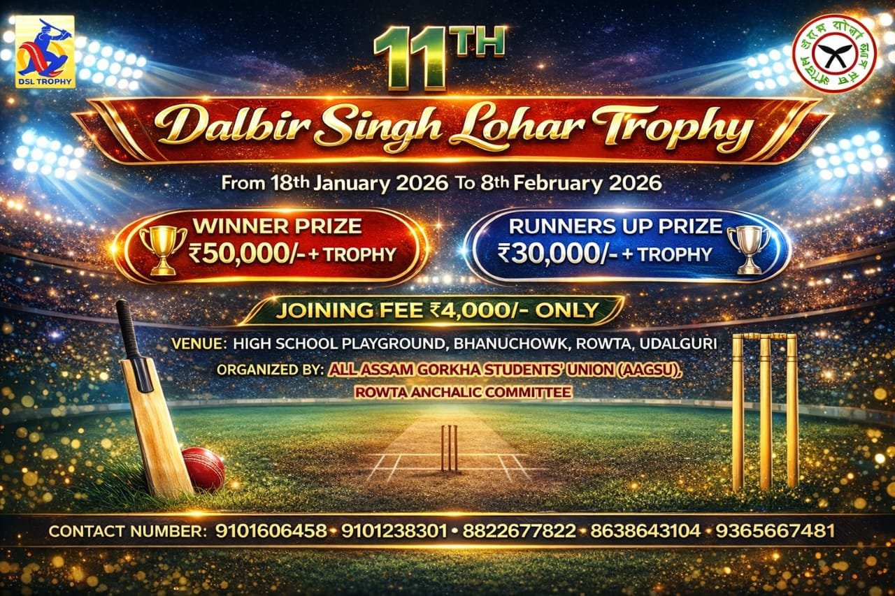 Rowta, January 14, 2026: Preparations are in full swing for the 11th edition of the Dalbir Singh Lohar Trophy (DSL Trophy) open Cricket tournament, which is being organized by the All Assam Gorkha StudentsтАЩ Union (AAGSU), Rowta Anchalic Committee. The much-anticipated tournament will be held from January 18, 2026 to February 8, 2026 at the High School Playground, Bhanuchowk, Rowta, under Udalguri district.