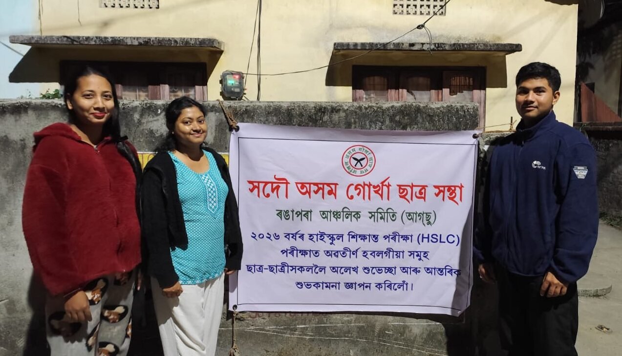 ৰঙাপৰা, 10 ফেব্ৰুৱাৰী: আগন্তুক ২০২৬ বৰ্ষৰ হাইস্কুল শিক্ষান্ত পৰীক্ষা (HSLC) আৰু উচ্চতৰ মাধ্যমিক (HS) চূড়ান্ত পৰীক্ষাক কেন্দ্ৰ কৰি শিক্ষাৰ্থীসকলৰ মাজত এক অধ্যয়নমুখী পৰিৱেশৰ সৃষ্টি হৈছে। এনে সময়তে সদৌ অসম গোৰ্খা ছাত্ৰ সন্থা, ৰঙাপৰা আঞ্চলিক সমিতিয়ে এক শুভেচ্ছা বাৰ্তাৰ জৰিয়তে পৰীক্ষাত অৱতীৰ্ণ হ’বলগীয়া সকলো ছাত্ৰ-ছাত্রীলৈ আন্তৰিক শুভকামনা জ্ঞাপন কৰিছে। 📝