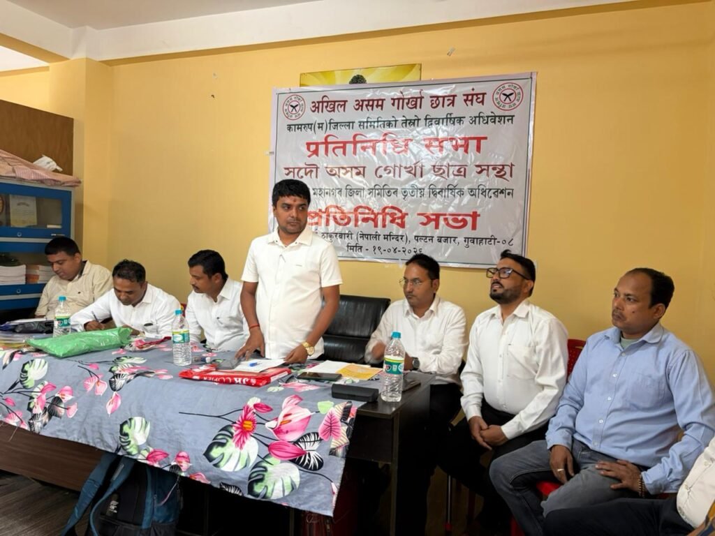 गुवाहाटी, १९ अप्रिल २०२६ — अखिल असम गोर्खा छात्र संघ (आग्सु) कामरुप महानगर जिल्ला समितिको तेस्रो द्विवार्षिक अधिवेशन तथा प्रतिनिधि सभा गुवाहाटीको पल्टन बजारस्थित गोर्खा ठाकुरबारी (नेपाली मन्दिर) मा भव्यताका साथ सम्पन्न भएको छ। निवर्तमान जिल्ला सभापति अमित पौडेलको अध्यक्षतामा आयोजित उक्त सभामा विद्यार्थी, युवा तथा स्थानीय गोर्खा समुदायको उत्साहजनक एवं बाक्लो उपस्थिति रहेको थियो।
