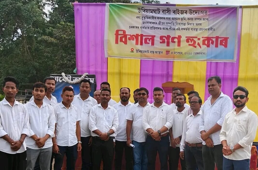 উৰীয়ামঘাট,নবেম্বৰ ৫ : অসম–নাগালেণ্ড সীমান্তৰ স্পৰ্শকাতৰ অঞ্চল উৰীয়ামঘাটত যোৱা ইংৰাজী ৪ নবেম্বৰ, মঙ্গলবাৰে বৃহত্তৰ উৰীয়ামঘাটবাসীৰ উদ্যোগত এক বিশাল গণ-হুংকাৰ সমাবেশ অনুষ্ঠিত হয়। স্থানীয় ৰাইজৰ দ্বাৰা আয়োজিত উক্ত কাৰ্যসূচীটোৱে অসম–নাগালেণ্ড সীমান্তত দিনক দিনে বৃদ্ধি পাই থকা নাগা অনুপ্ৰৱেশ আৰু দখল প্ৰবণতাৰ বিৰুদ্ধে তীব্ৰ প্ৰতিবাদ প্ৰকাশ কৰে।